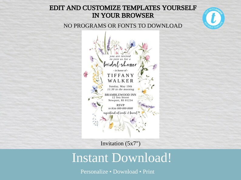 Printable Bridal Shower Invitation Template Floral Bridal Shower