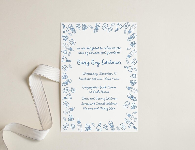 Hand Drawn Bris Invite Template Brit Milah Invitation Personalizable
