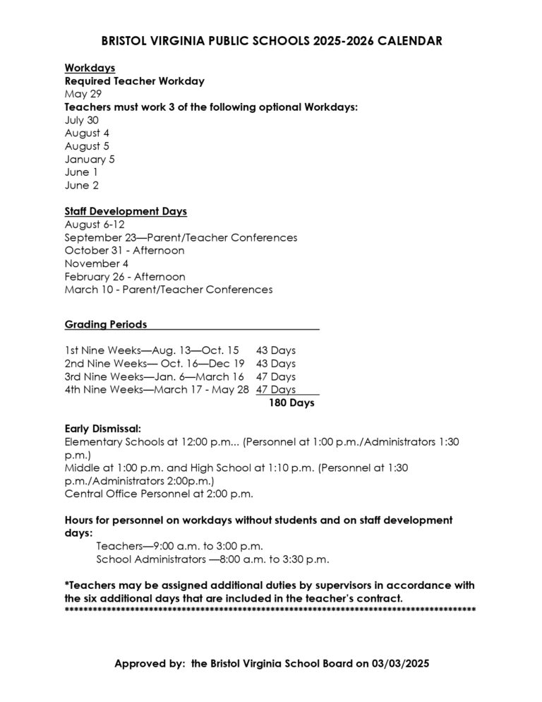 Bristol Virginia Public Schools Calendar 25 26 Revised PDF EduCounty