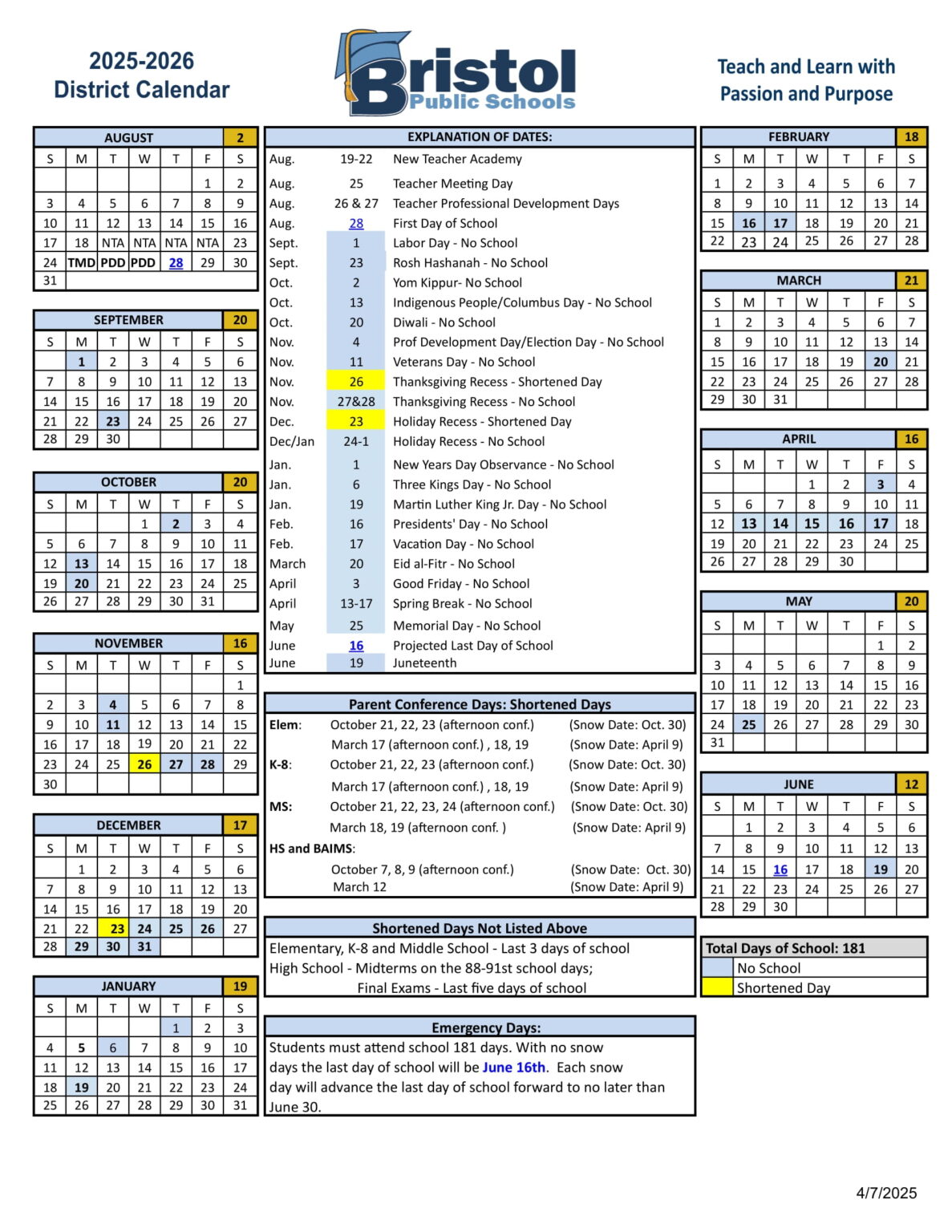Bristol Public Schools CT Calendar 25 26 Revised pdf EduCounty