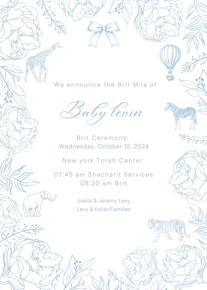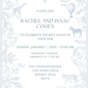 Editable Brit Milah Invitation Template for Baby Boy Blue Safari