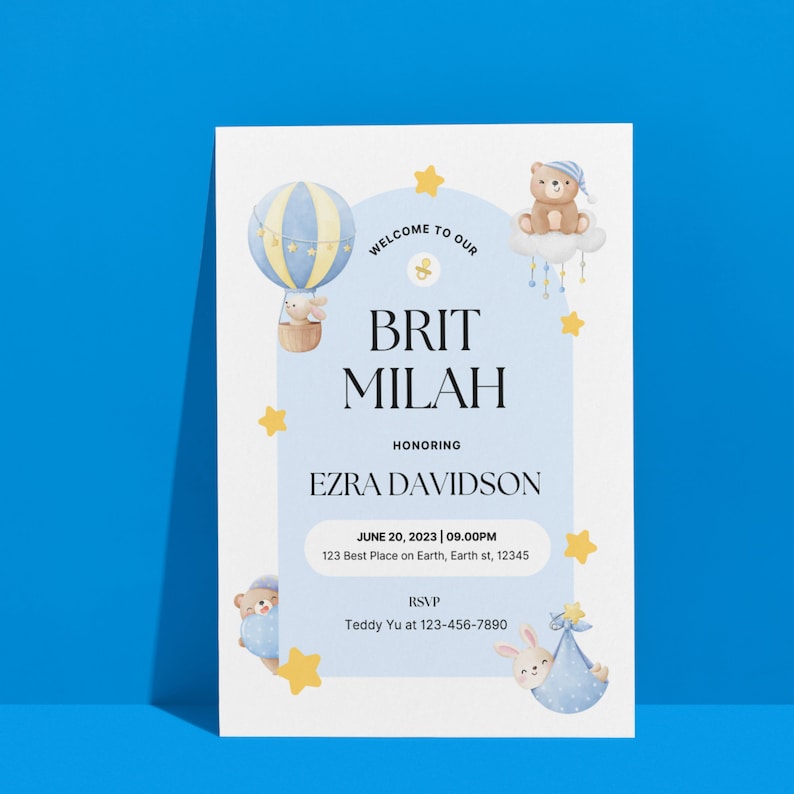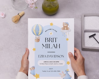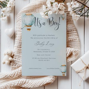 Editable Brit Milah Invitation Template for Baby Boy Blue Hot Air
