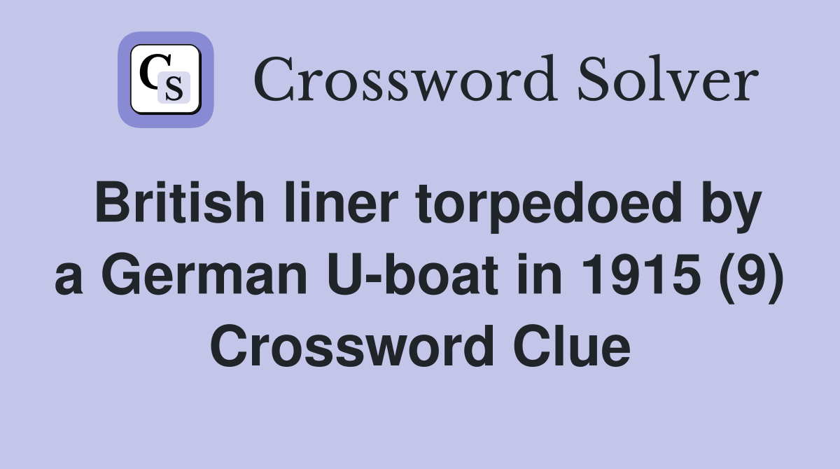 British liner torpedoed by a German U boat in 1915 (9) Crossword Clue