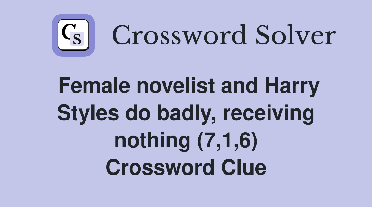 Female novelist and Harry Styles do badly receiving nothing (7 1 6
