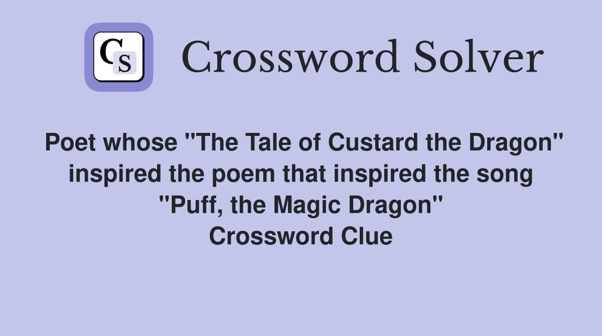 Poet whose quot The Tale of Custard the Dragon quot inspired the poem that