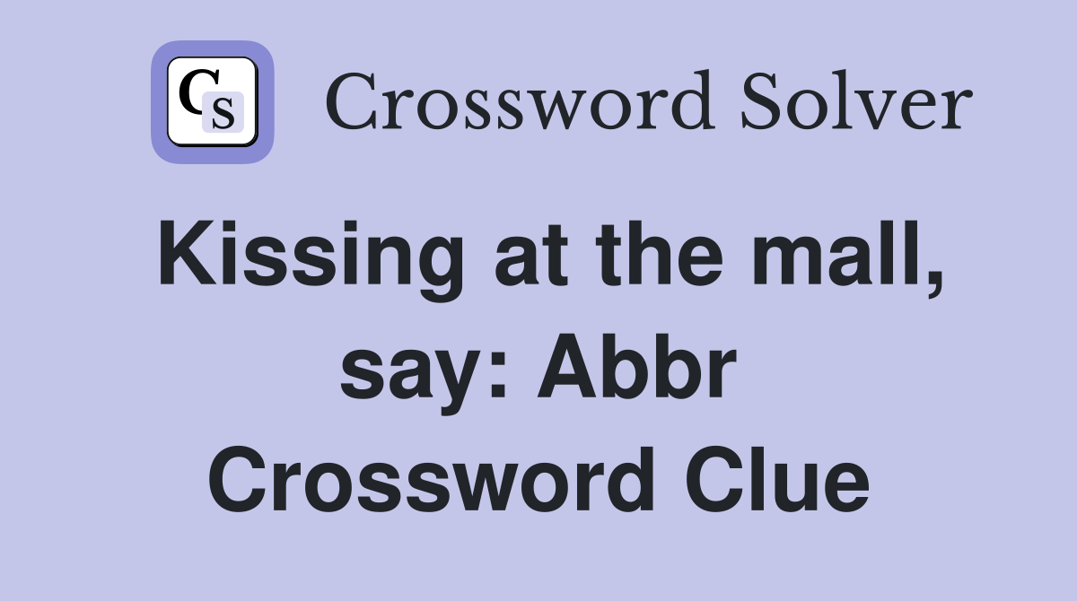 Kissing at the mall say: Abbr Crossword Clue Answers Crossword Solver