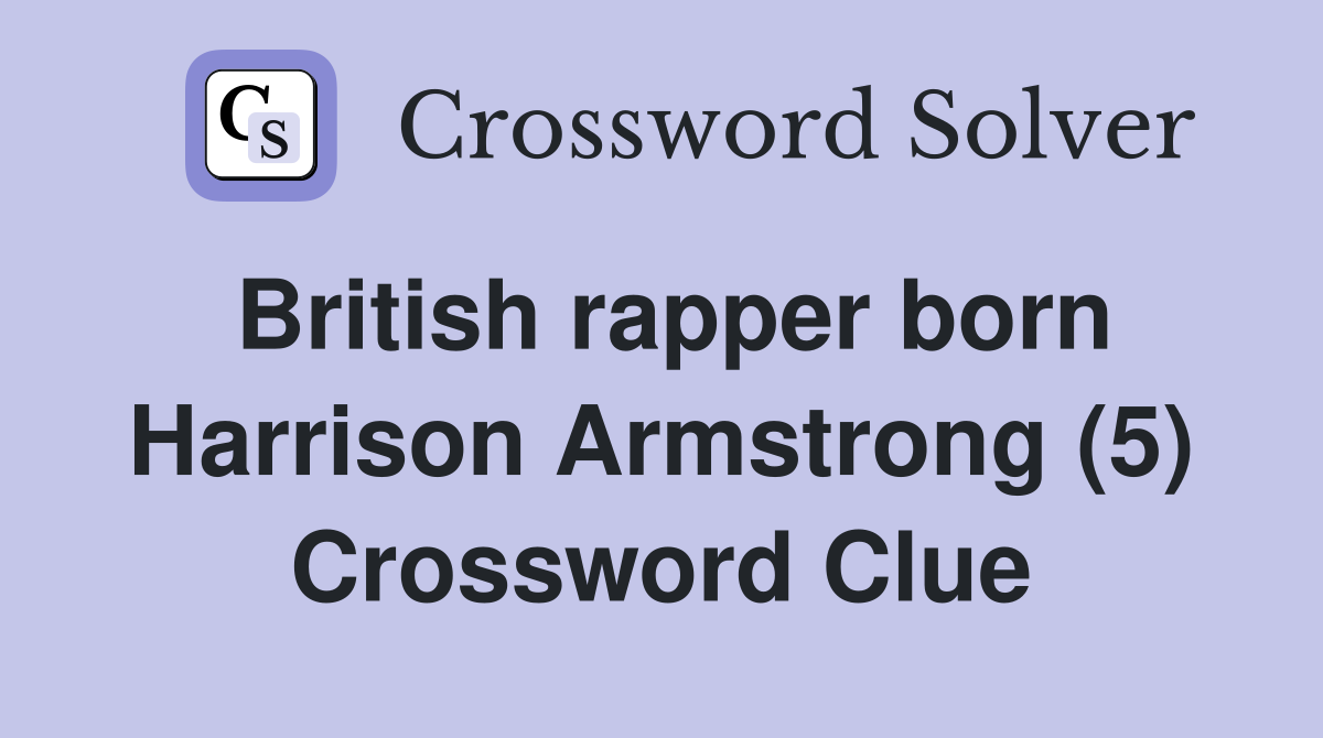 British rapper born Harrison Armstrong (5) Crossword Clue Answers
