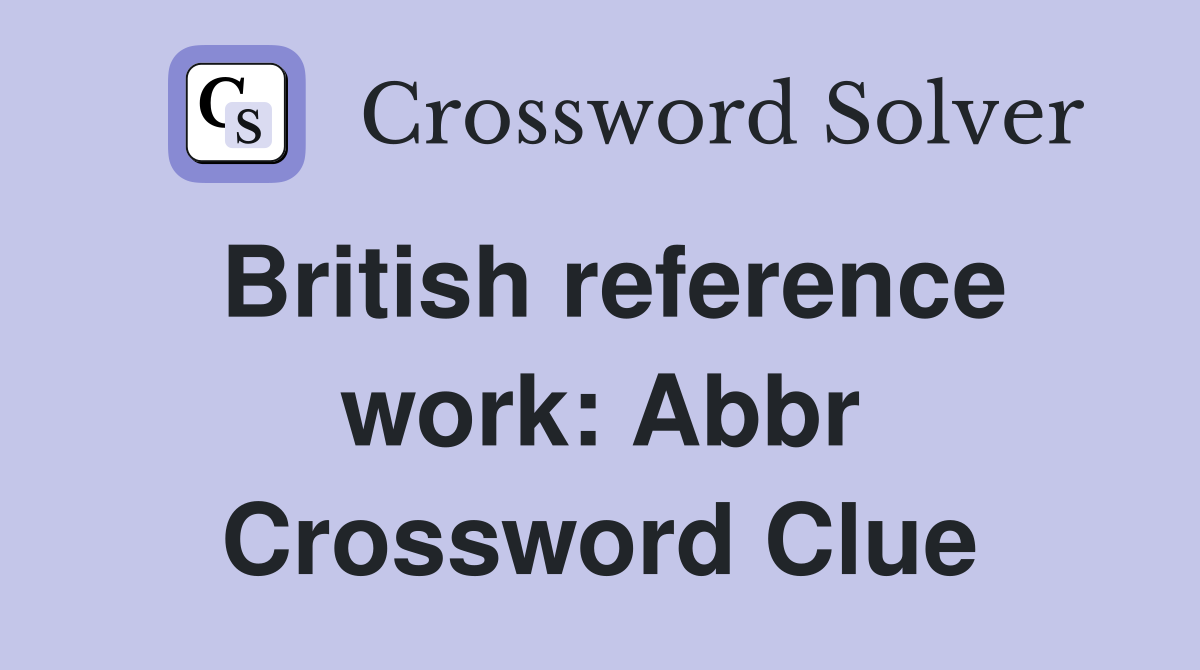 British reference work: Abbr Crossword Clue Answers Crossword Solver