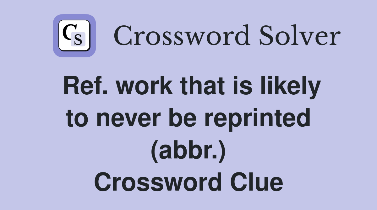 Ref work that is likely to never be reprinted (abbr ) Crossword Clue