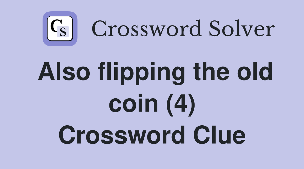 Also flipping the old coin (4) Crossword Clue Answers Crossword Solver