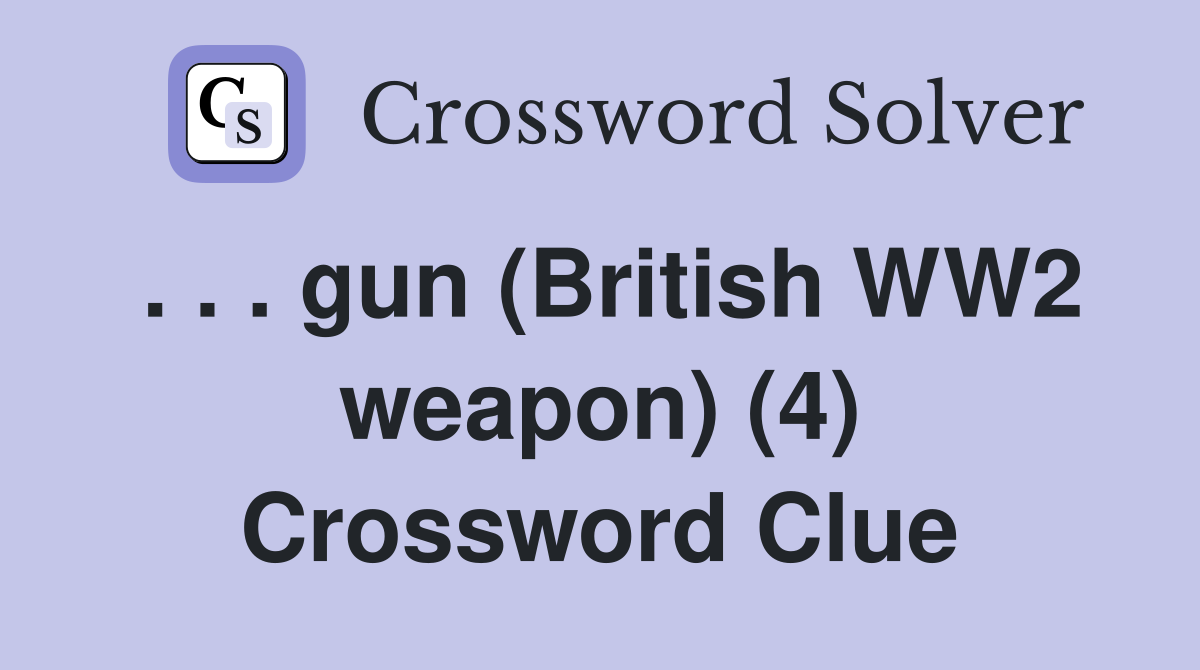 gun (British WW2 weapon) (4) Crossword Clue Answers Crossword Solver