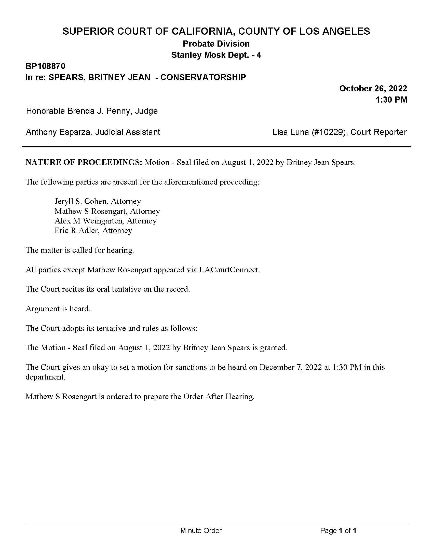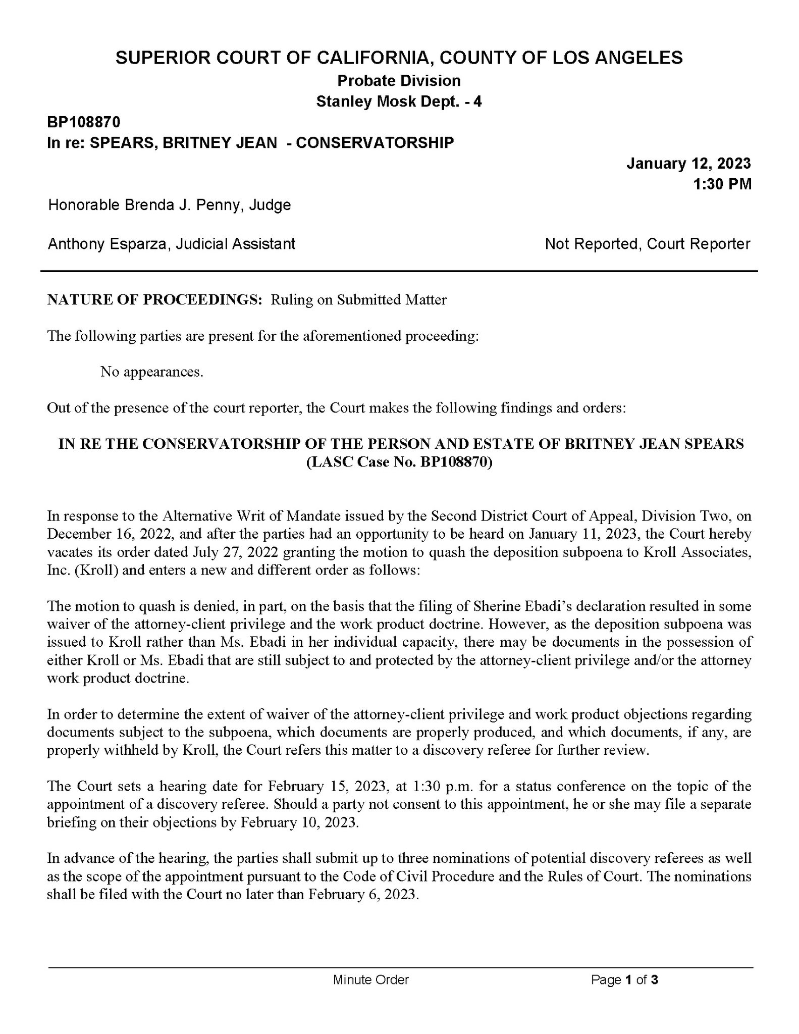 Britney Spears Court Documents on Twitter: quot ⚖️ 1 12 23 MINUTE ORDER