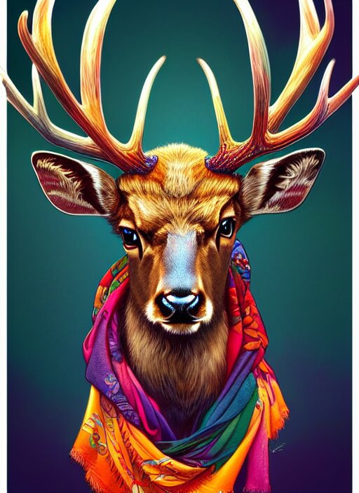 Lexica Symmetry portrait of antlered deer wearing a colorful beanie