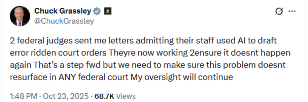 As Judges Admit AI Drafted Faulty Orders Sen Grassley Demands Oversight