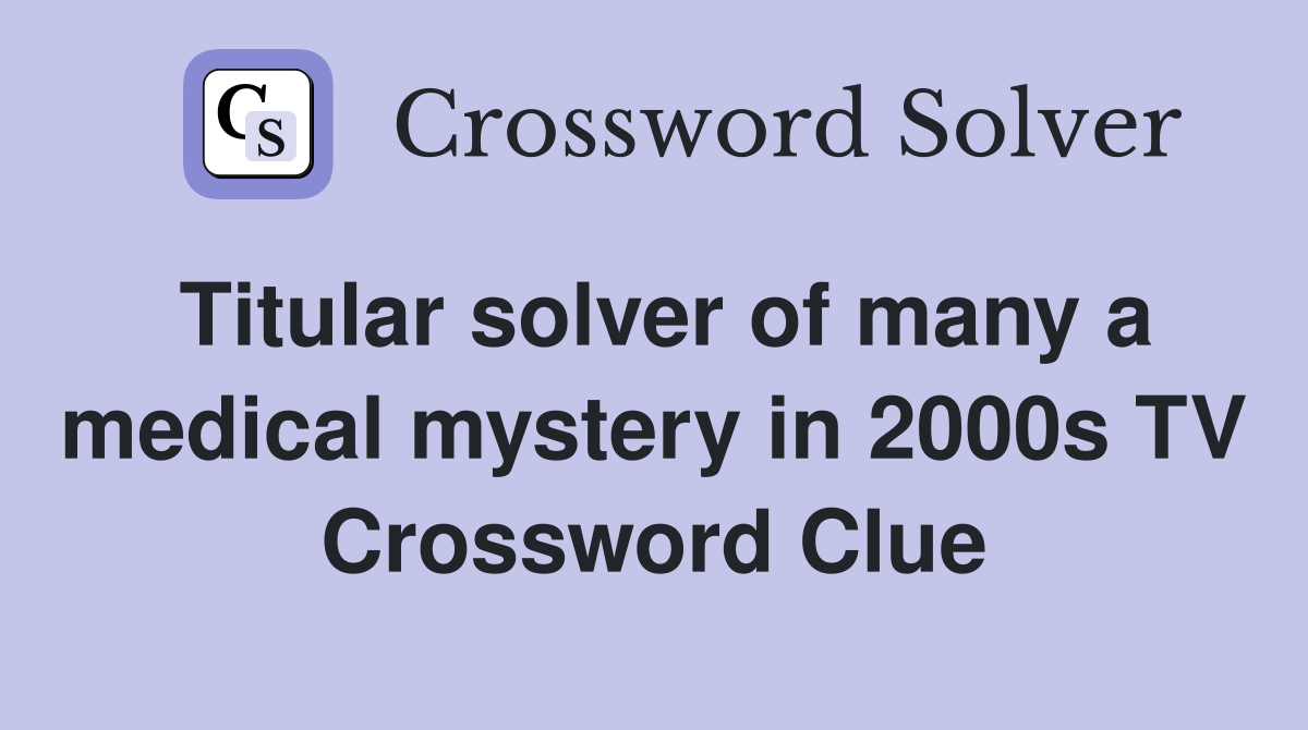 Titular solver of many a medical mystery in 2000s TV Crossword Clue