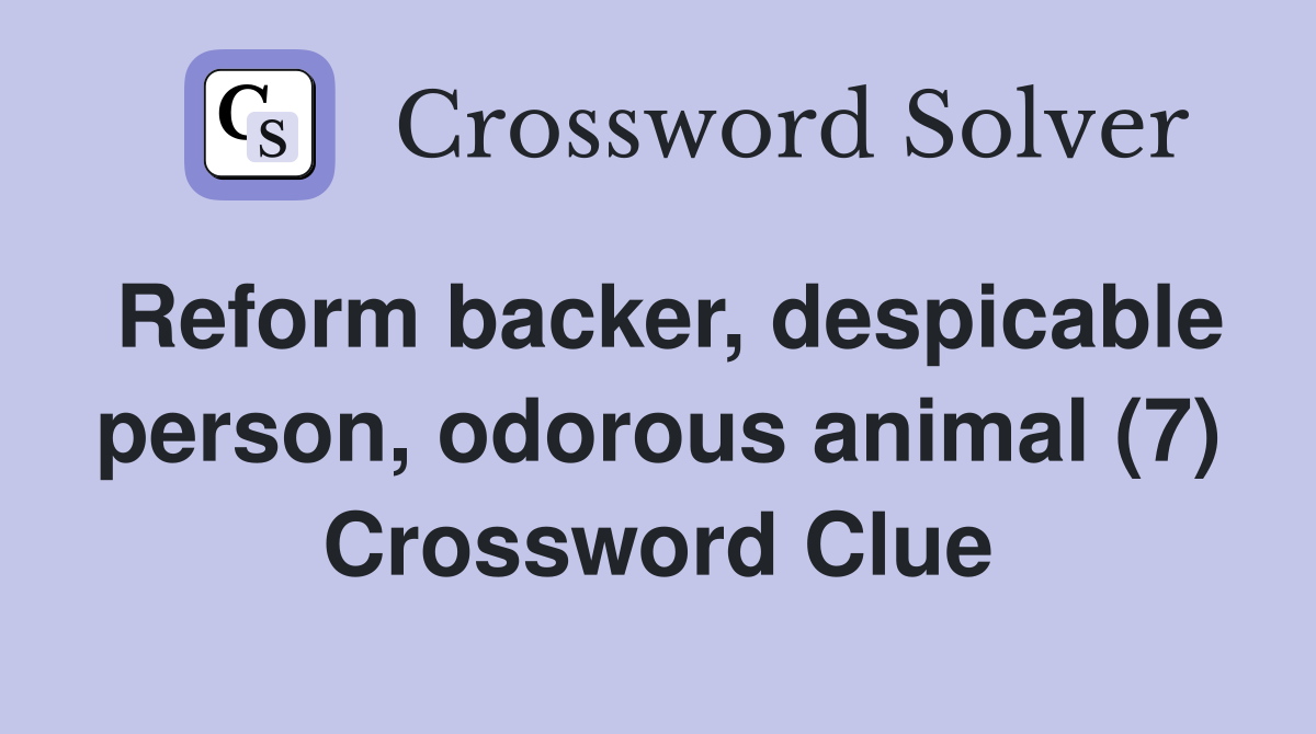Reform backer despicable person odorous animal (7) Crossword Clue