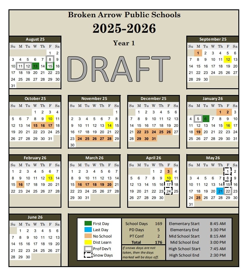 Broken Arrow schools propose 2025 2026 calendar drafts public survey