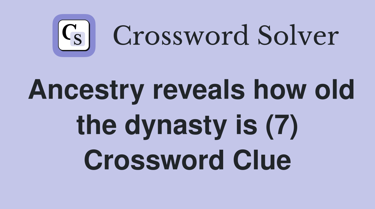 Ancestry reveals how old the dynasty is (7) Crossword Clue Answers