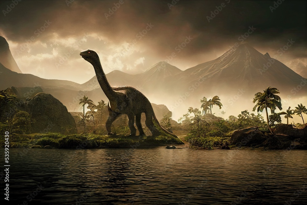 Premium AI Image Brontosaurus wide angle view full body portrait at