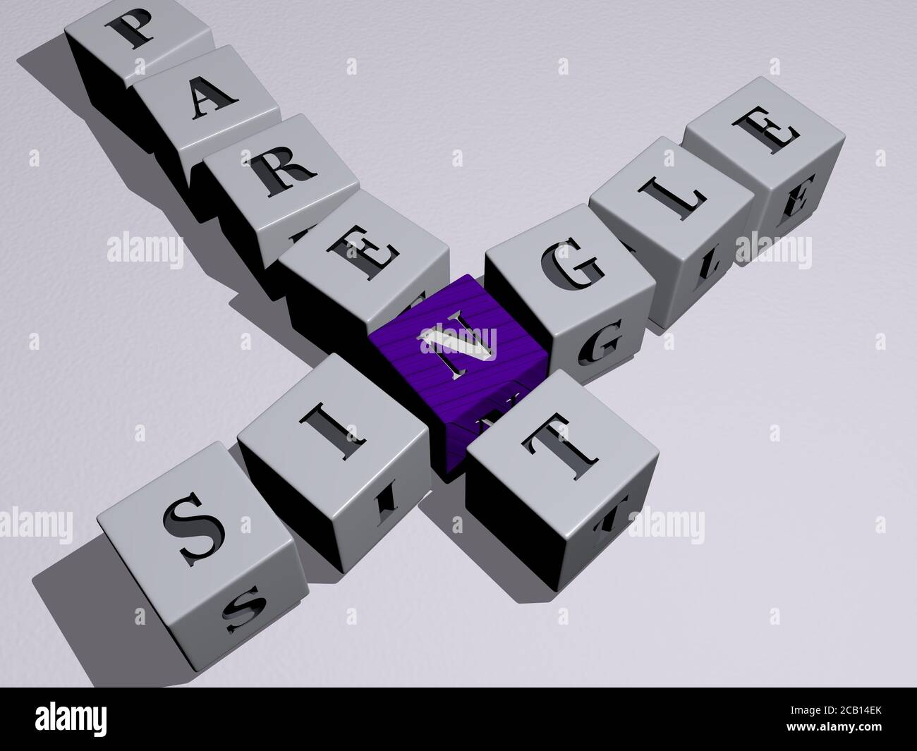 SINGLE PARENT crossword by cubic dice letters 3D illustration