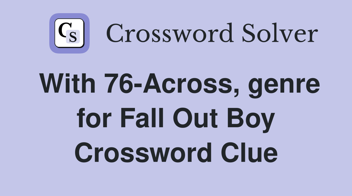 With 76 Across genre for Fall Out Boy Crossword Clue Answers