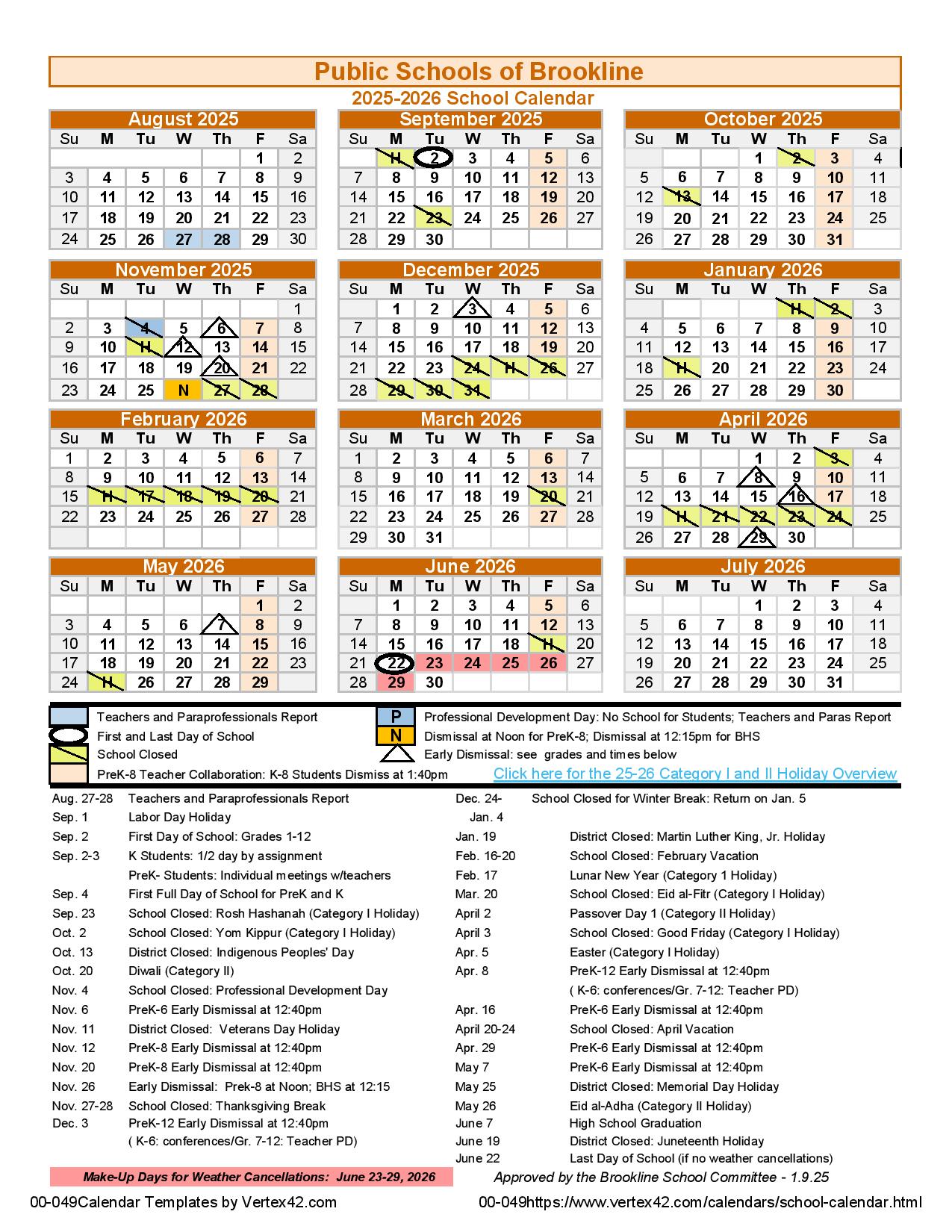 Brookline Public Schools Calendar 2025 2026 Academic Holidays