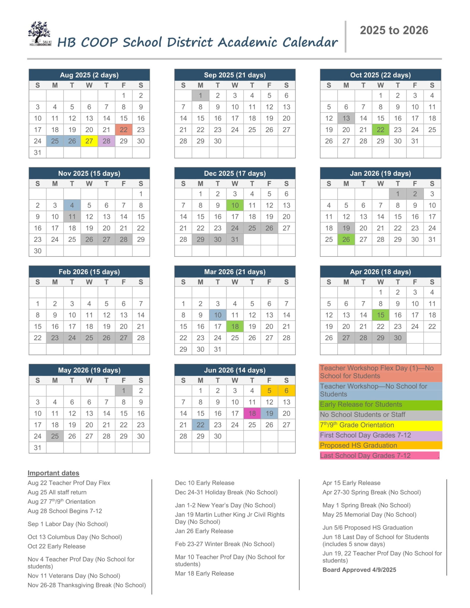 Brookline School District sau41 NH Calendar 25 26 Revised pdf EduCounty