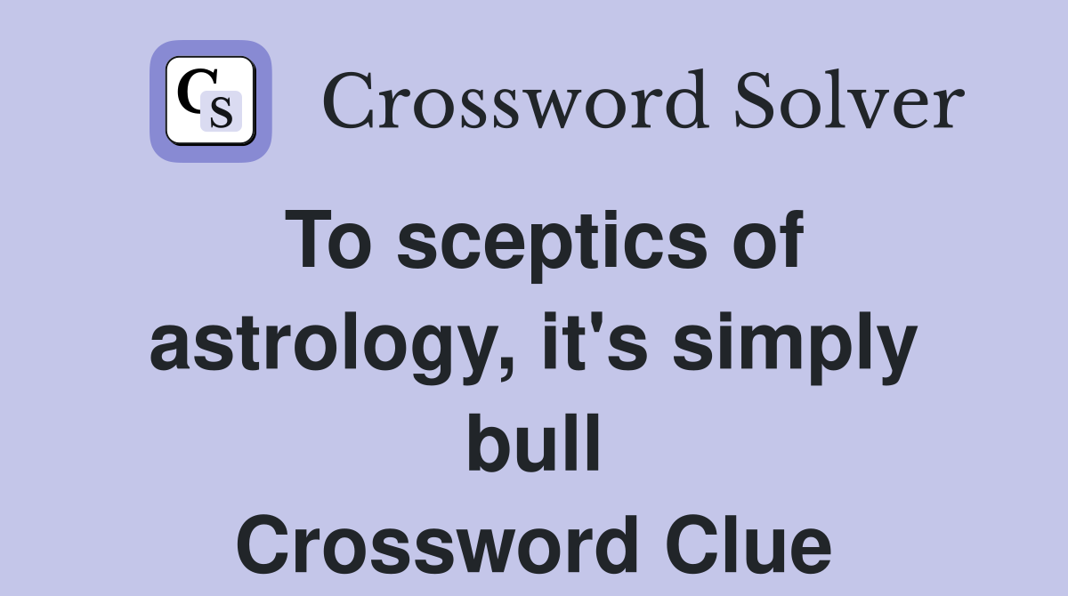To sceptics of astrology it #39 s simply bull Crossword Clue Answers