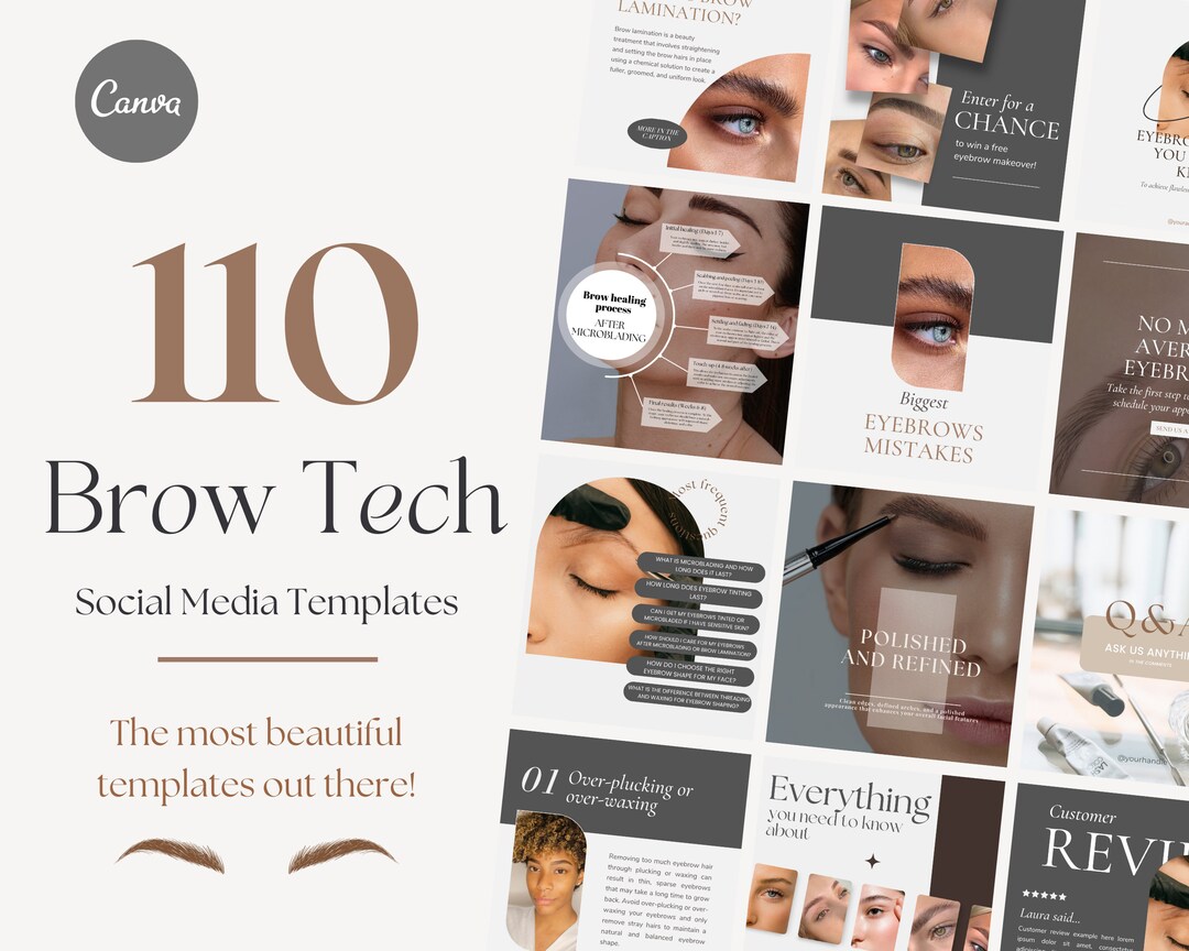 🔊Instagram Templates For Brow Artists Beige Brow Tech Post Templates
