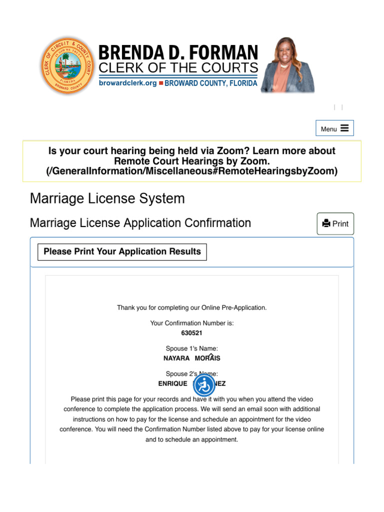 Marriage License Application Confirmation Broward County Clerk of