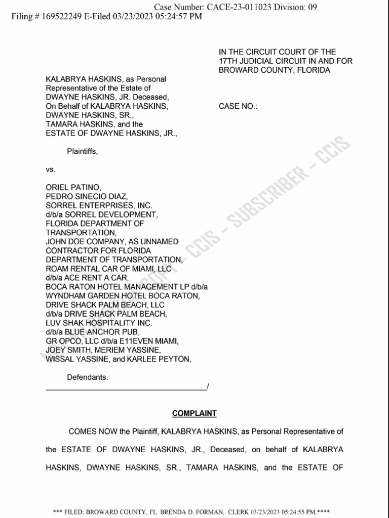 Dwayne Haskins JR Complaint Filed in Broward County Circuit Court