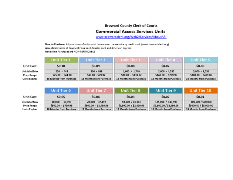 Broward County Clerk of Courts Commercial Data Access Units Pricing