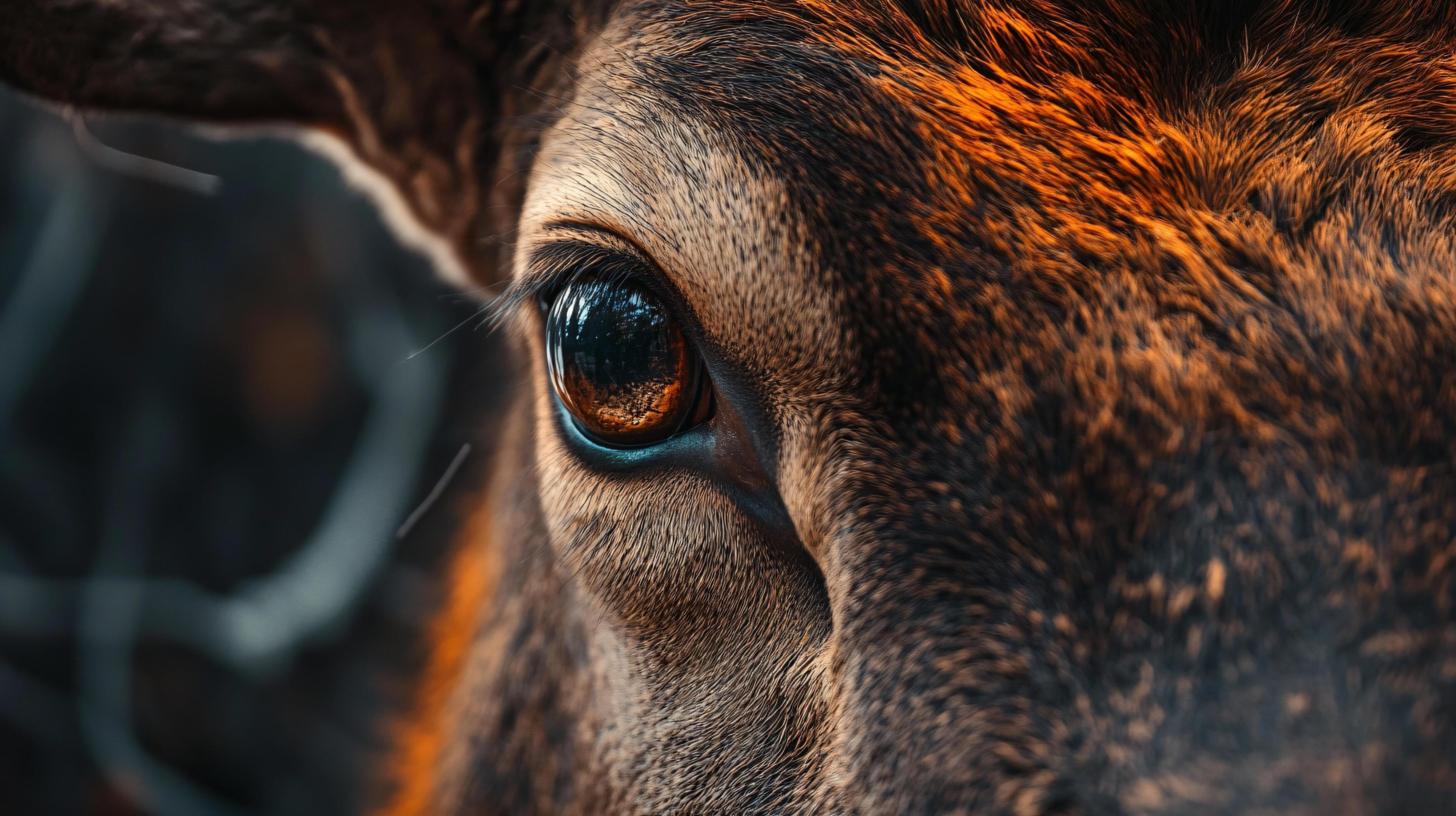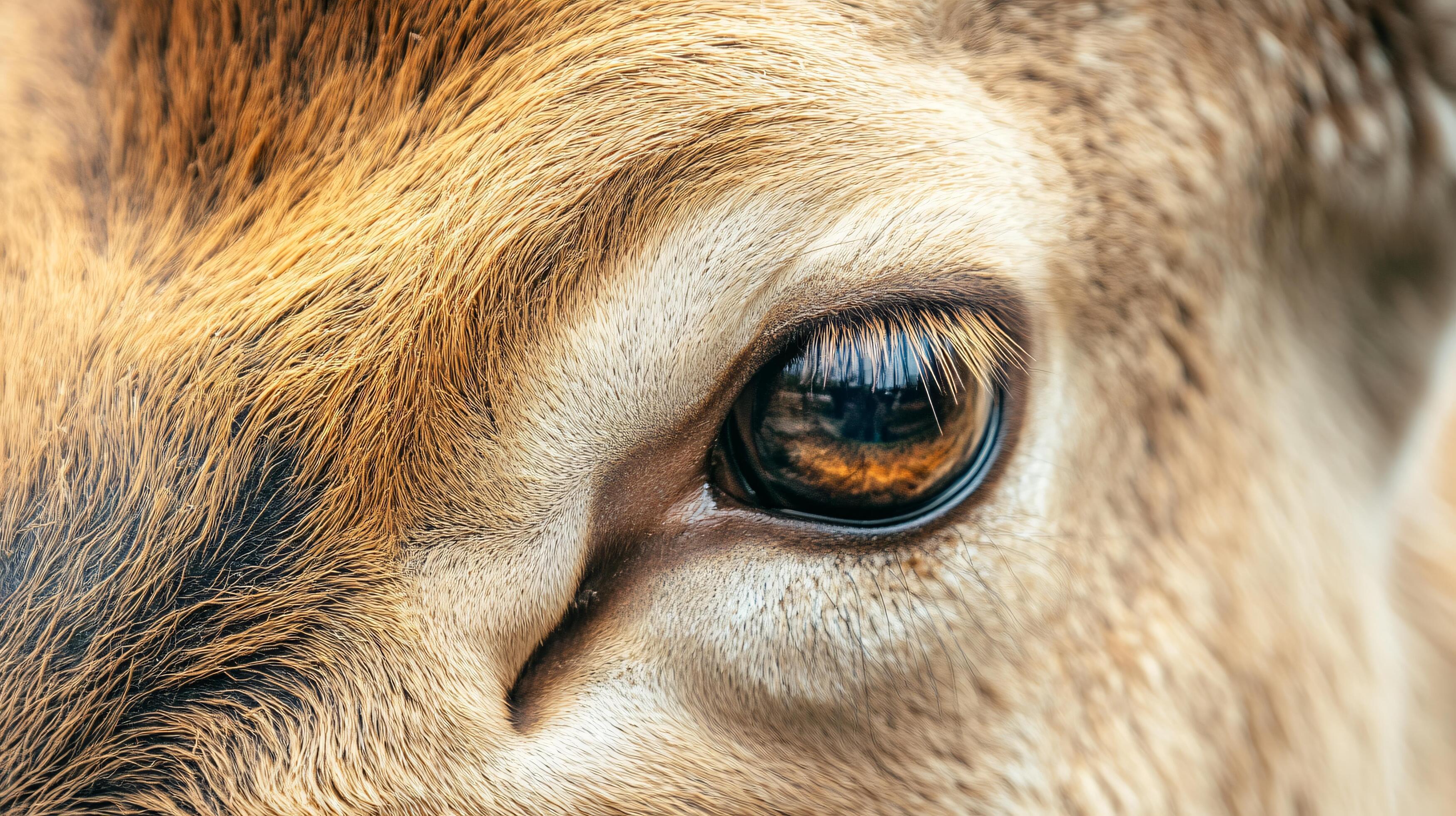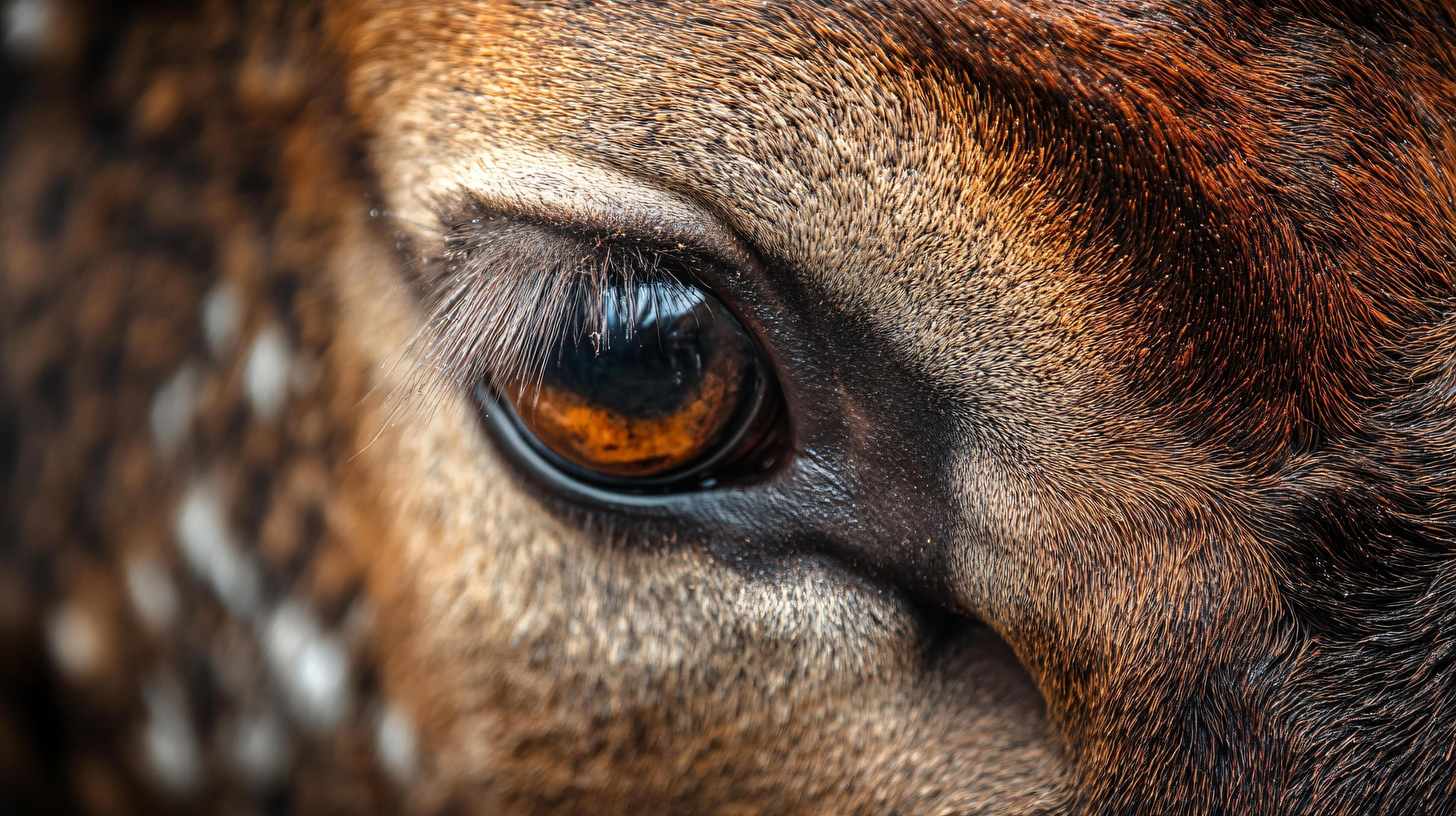 Close up of a deer #39 s eye with a brownish tint The eye is surrounded by