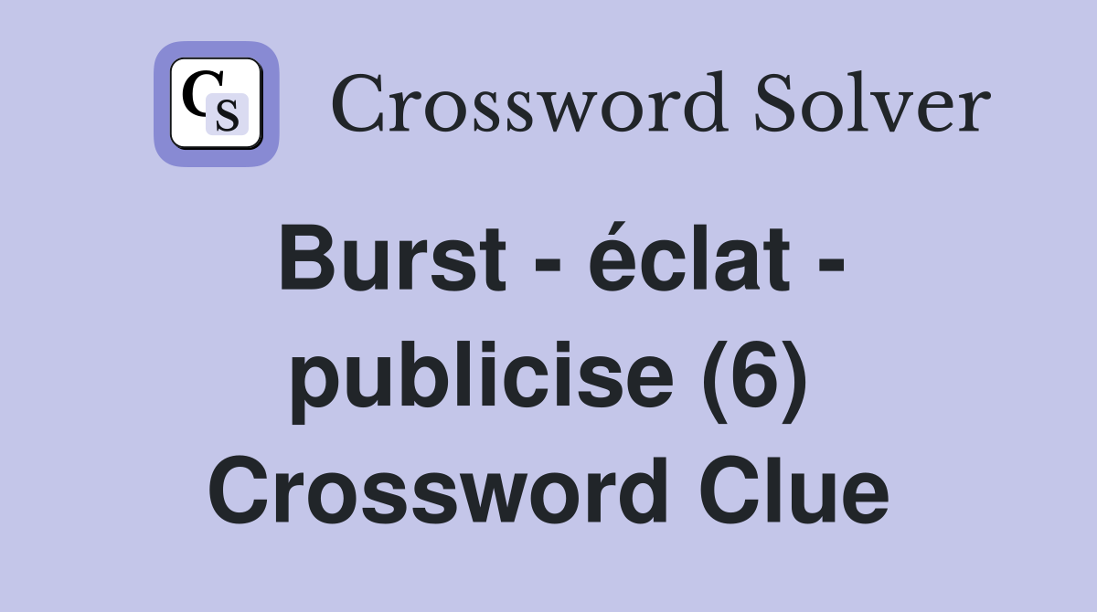 Burst éclat publicise (6) Crossword Clue Answers Crossword Solver