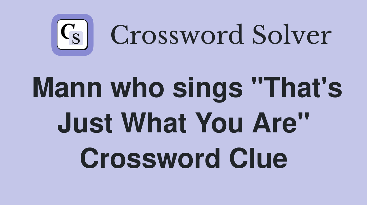 Mann who sings quot That #39 s Just What You Are quot Crossword Clue Answers