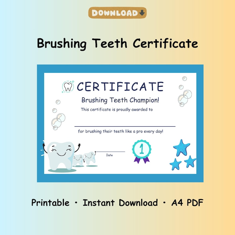 Brushing Teeth Certificate for Kids Printable Tooth Brushing Award