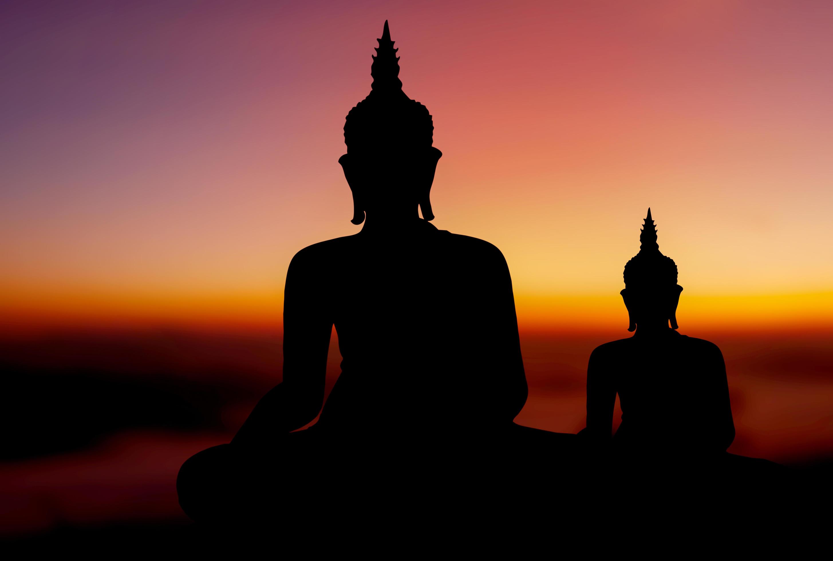 buddha silhouette on golden sunset background beliefs of Buddhism