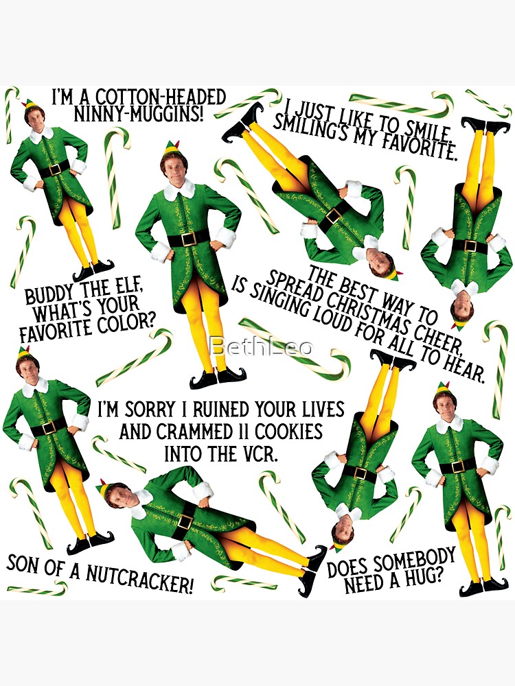 quot Buddy The Elf Print White quot Sticker for Sale by BethLeo Redbubble