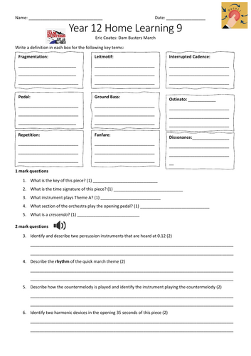 CCEA GCSE Music Coates Dam Busters Worksheet Teaching Resources