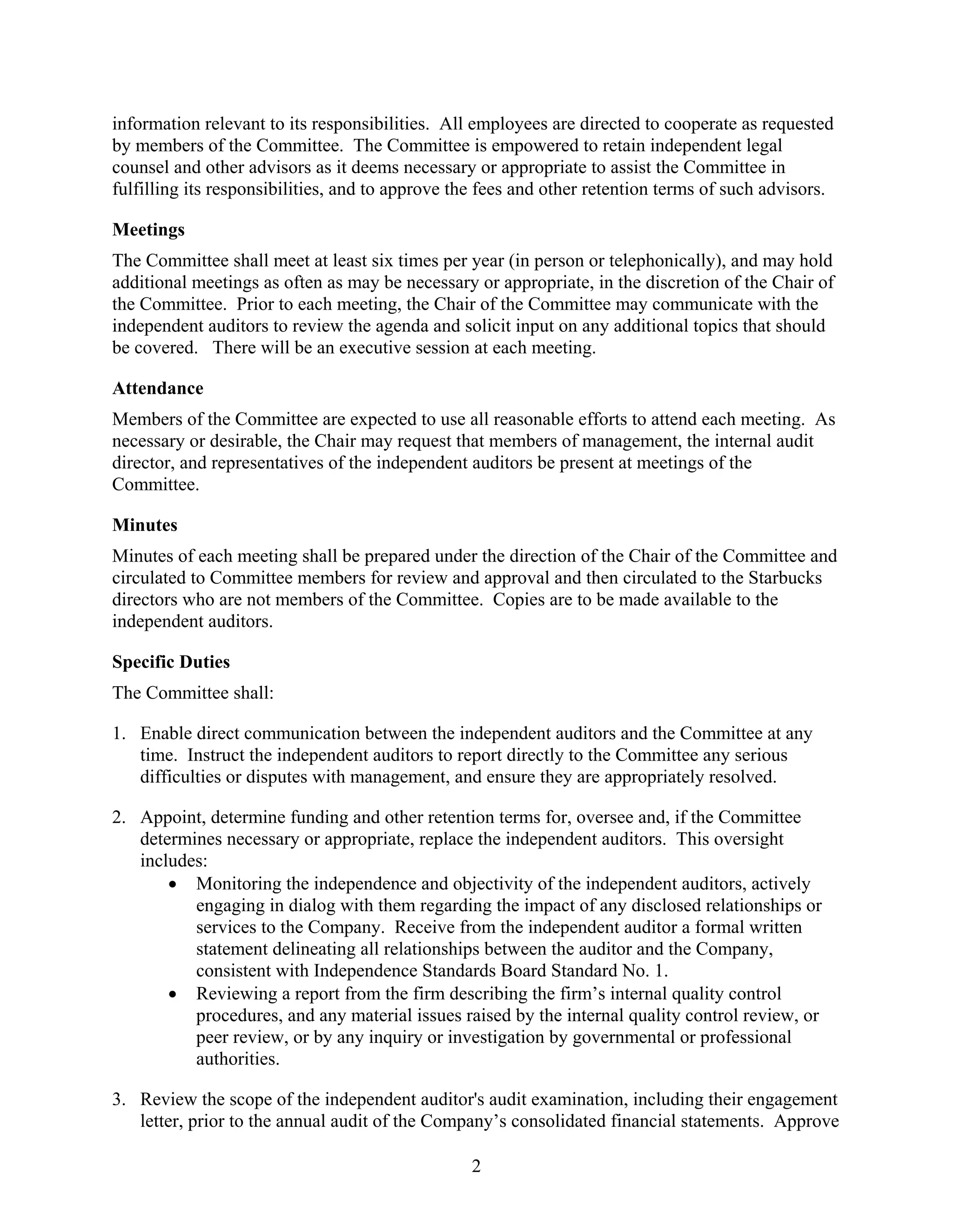 starbucks Audit Committee Charter PDF