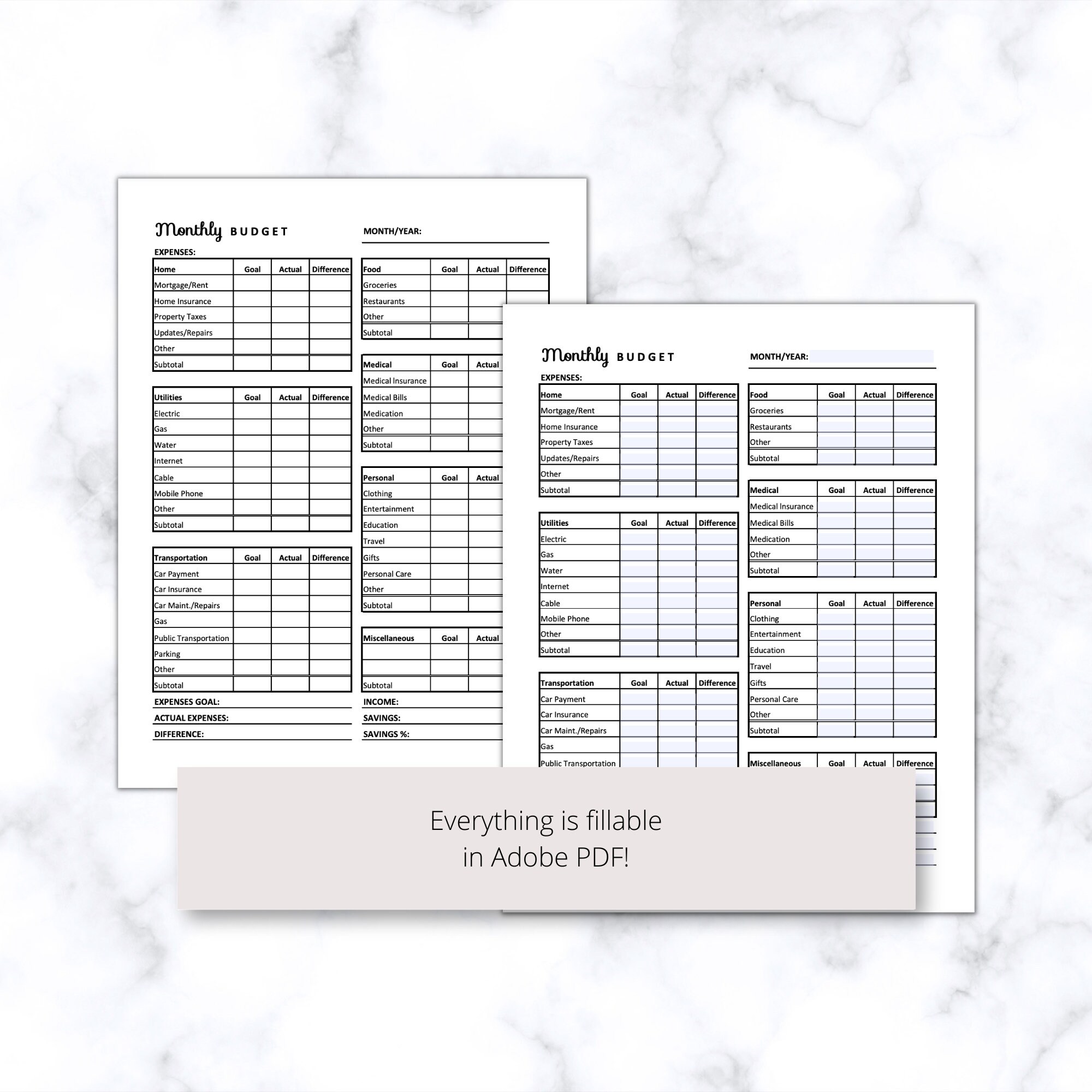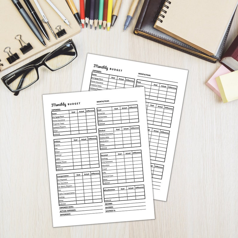 Monthly Budget Sheet Downloadable PDF Budget Template Printable