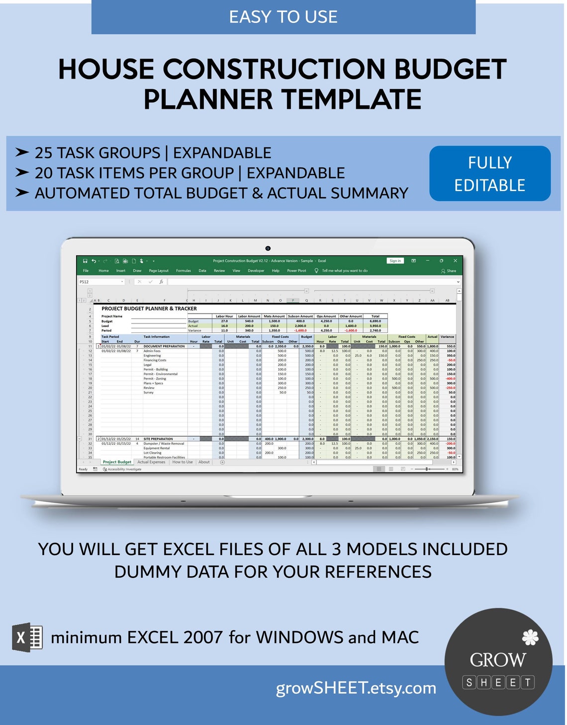 Editable Construction Budget Templates in Excel to Download