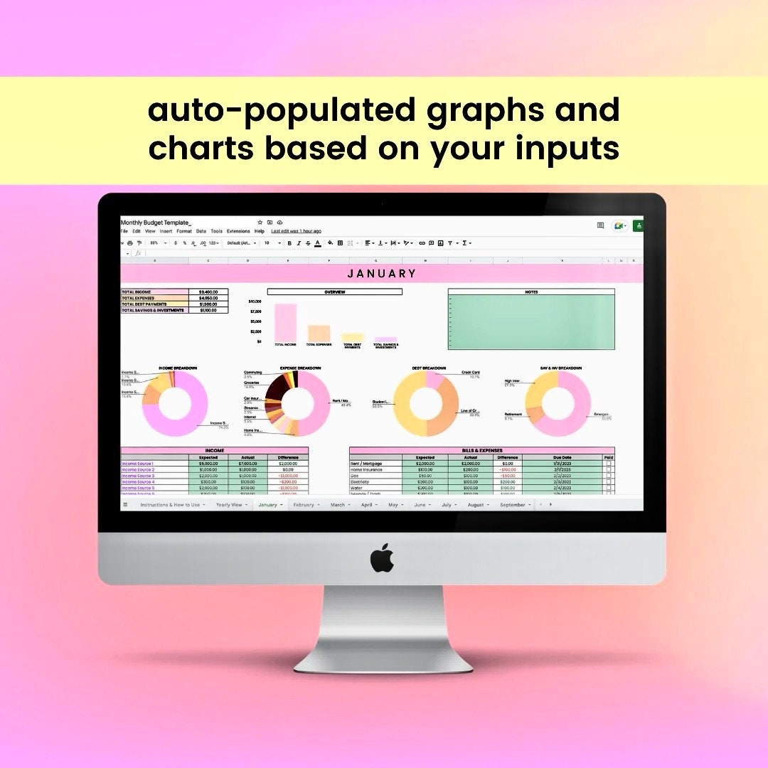 Monthly Budget Google Sheets Template Etsy
