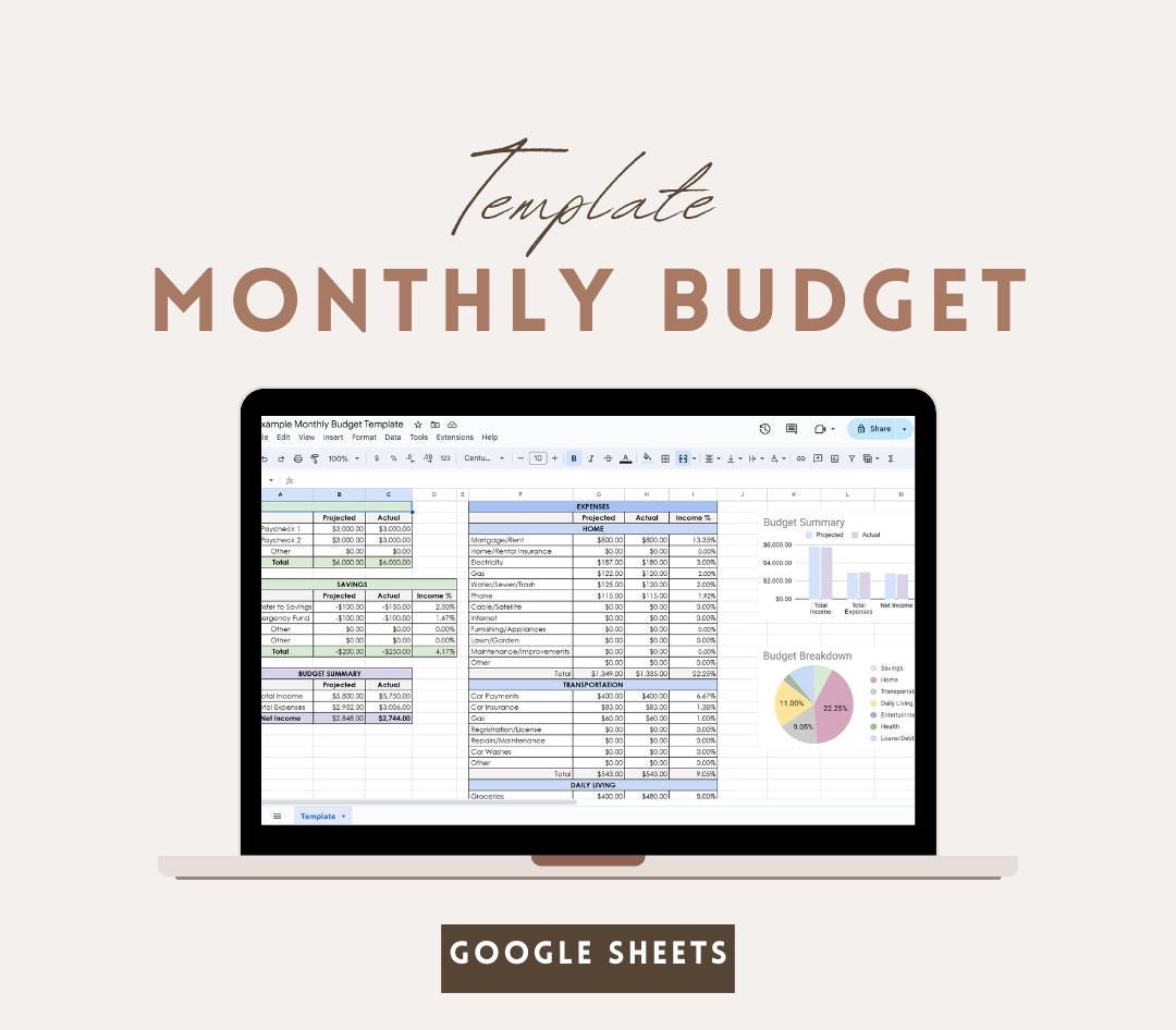 Monthly Budget Template (google Sheets) Etsy