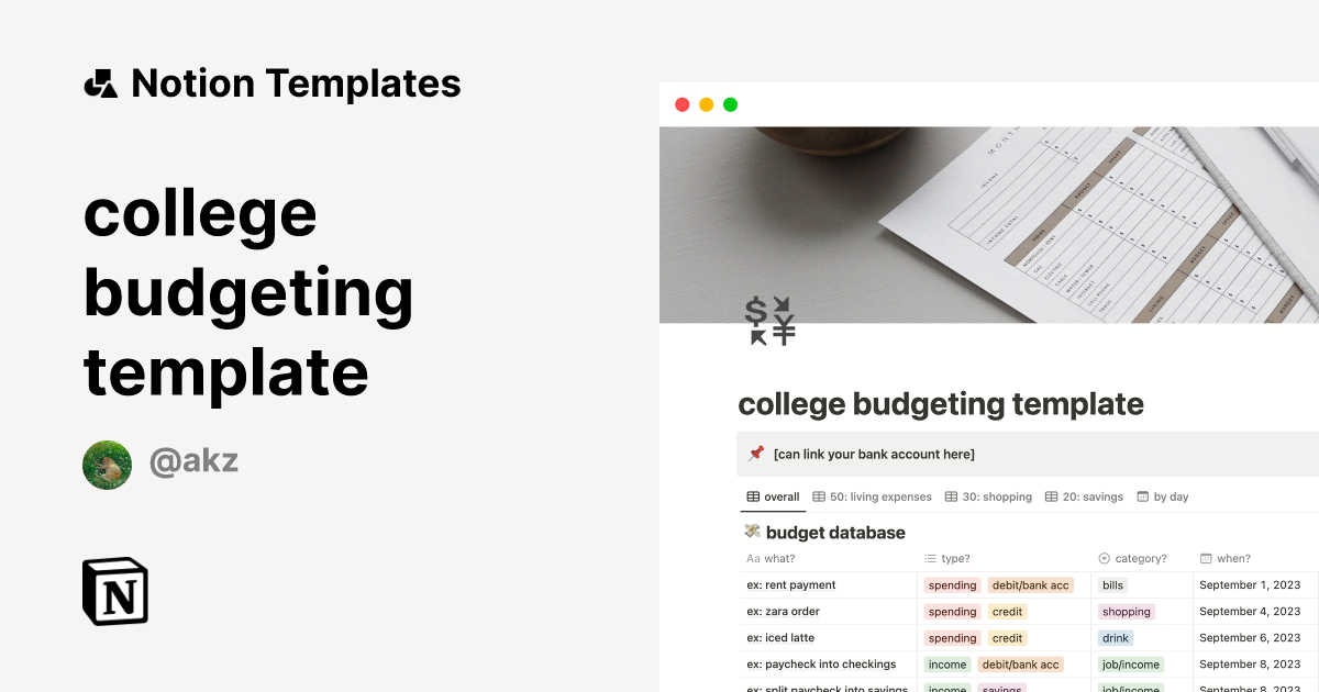 Free Notion Budgeting Template (50/30/20 Rule) Best Notion Templates
