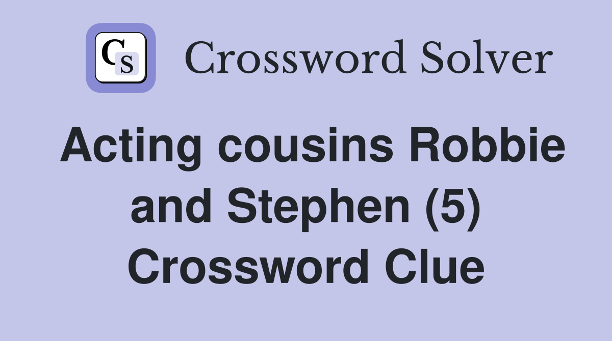 Acting cousins Robbie and Stephen (5) Crossword Clue Answers