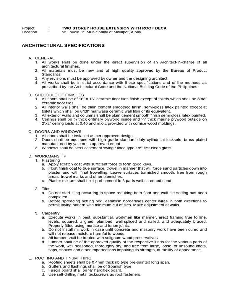 Building Specification PDF Home Architectural Elements