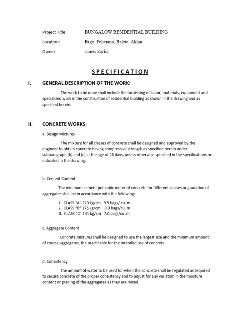 Building Specification PDF Concrete Cement