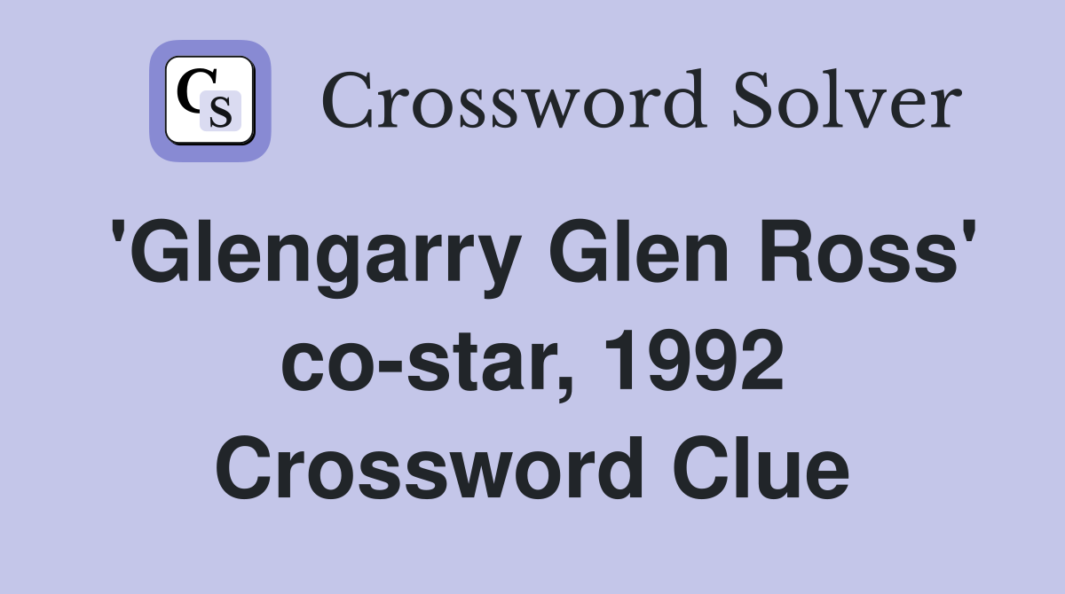 #39 Glengarry Glen Ross #39 co star 1992 Crossword Clue Answers