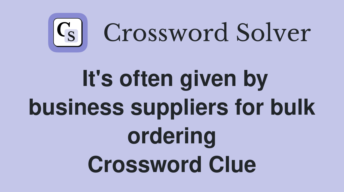 It #39 s often given by business suppliers for bulk ordering Crossword